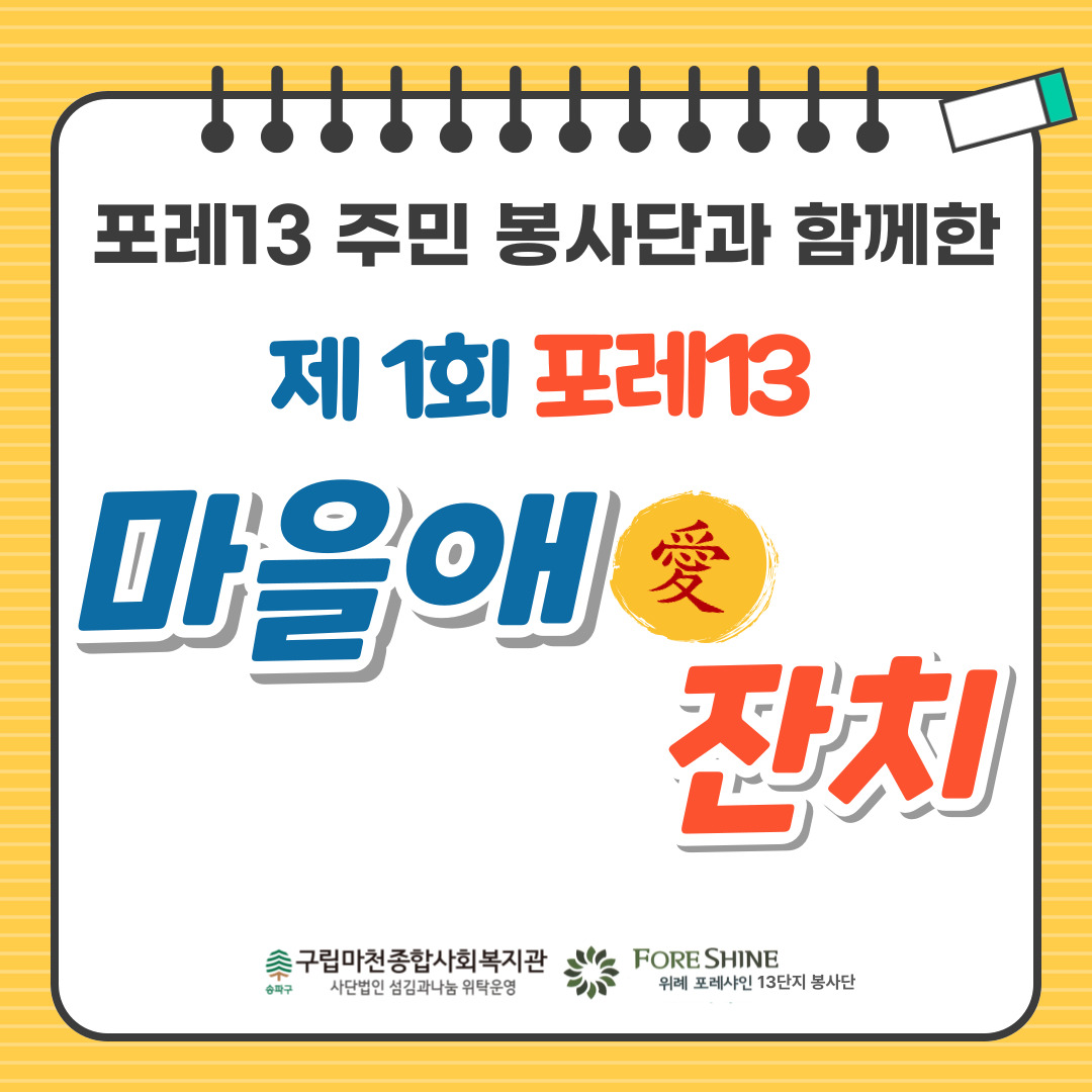 [Áö¿ªÁÖ¹Î] 13´ÜÁö ¸ÂÃãÇü »ç¾÷ 'Æ÷·¹13 ¸¶À»¾Ö(äñ) ÀÜÄ¡'