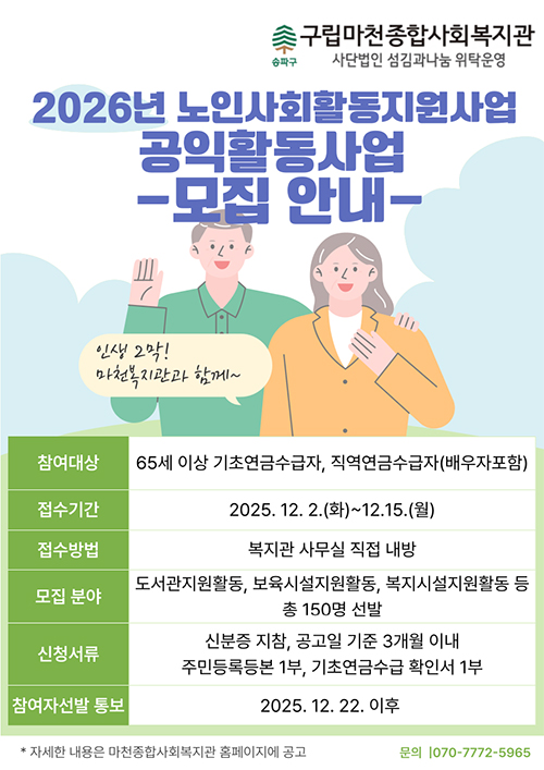 2026³â ³ëÀÎÀÏÀÚ¸® ¹× »çȸȰµ¿Áö¿ø»ç¾÷(°øÀÍȰµ¿»ç¾÷...