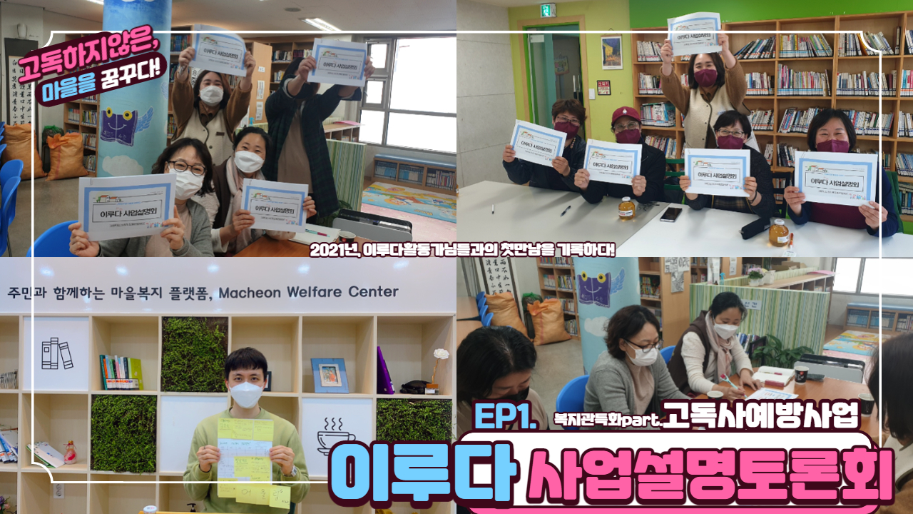 Áö³ 3¿ù23ÀÏ(È)°ú 25ÀÏ(¸ñ), °íµ¶»ç¿¹¹æÀ» À§ÇÑ ¸¶À»´ÜÀ§°ü°èȸº¹Ä¿¹Â´ÏƼÇÁ·ÎÁ§Æ®ÀÌ·ç´Ù(ÀÌ¿ôµéÀÌ µÎ·çµÎ·ç¸¸³ª´Ù) »ç¾÷¼³¸íÅä·Ðȸ°¡ ÁøÇàµÇ¾ú½À´Ï´Ù! Áö³ 20³â °íµ¶»ç¿¹¹æÈ°µ¿À» µ¹¾Æº» ÈÄ, 21³â Ȱµ¿¹æÇâÀ» ¸¸µé¾îº¸´Â ¶æ±íÀº ÀÚ¸®¿´´Âµ¥¿ä, Äڷγª19·Î ÀÎÇØ 4¸íÀÌÇÏ·Î ±×·ìÈ ÇÏ¿©,¸¶À»Àα٠µµ¼°ü¿¡µµ ¸¸³ª°í, º¹Áö°ü ÇÁ·Î±×·¥½Ç¿¡µµ ¸¸³ª¸çȰµ¿°¡ ÇѺÐÇѺÐÀÇ À̾߱âµé·Î ¾ËÂ÷°Ô ²Ù¸çÁø ½Ã°£!°¡Àå Àλó±í¾ú´ø °ÍÀº, ÀÌ·ç´ÙȰµ¿¿¡ ´ëÇØ ...