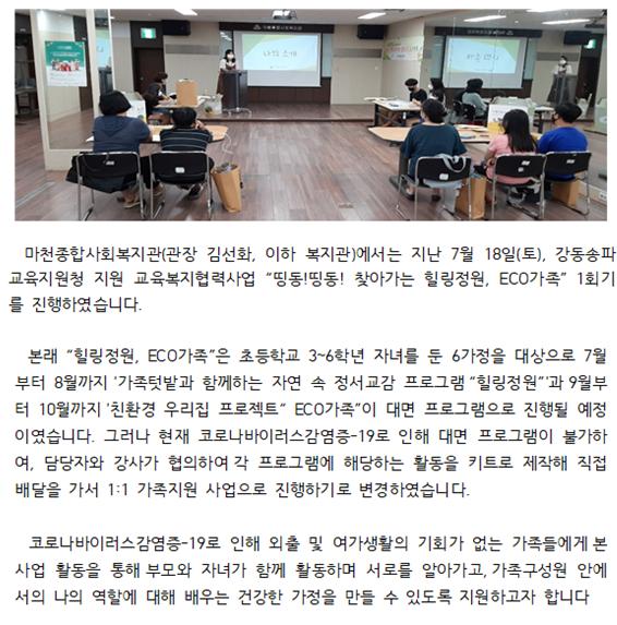 [±³À°º¹ÁöÇù·Â»ç¾÷] "¶òµ¿!¶òµ¿! ã¾Æ°¡´Â Èú¸µÁ¤¿ø, ECOÅÔ¹ç"...