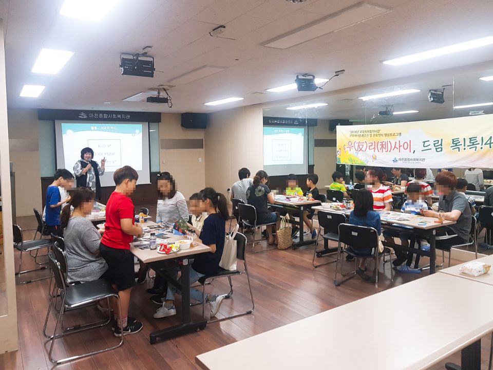 Áö³ 6¿ù 2ÀÏ(Åä), 6¿ù 16ÀÏ(Åä) ¸¶ÃµÁ¾ÇÕ»çȸº¹Áö°ü ÁöÇϰ´ç¿Í ¾Æ¸§Àεµ¼°ü¿¡¼ °µ¿¼ÛÆÄ±³À°Áö¿øÃ» Áö¿ø ±³À°º¹ÁöÇù·Â»ç¾÷ "¿ì(éÒ)¸®(××)»çÀÌ, µå¸²ÅåÅå" 5, 6ȸ±â°¡ ÁøÇàµÇ¾ú½À´Ï´Ù. 5, 6ȸ±â´Â "³ª¸¦ Ç¥ÇöÇϼ¼¿ä."¶ó´Â ÁÖÁ¦·Î 2ȸ±â µ¿¾È Àü¹®°»ç¸¦ ¸ð½Ã°í ÇູÇÑ °¡Á¤À» ¸¸µé±â À§ÇÑ ±àÁ¤Àû ÀÇ»ç¼ÒÅë ¹æ¹ý¿¡ ´ëÇØ ¹è¿ü½À´Ï´Ù. 5ȸ±â¿¡´Â ÇູÀ» ¸¸µå´Â ´ëȹýÀ» ¾Ë±â À§ÇØ Áö±Ý-¿©±â¿¡¼ÀÇ °¨Á¤¿¡ ÃÊÁ¡À» ¸ÂÃß°í ...