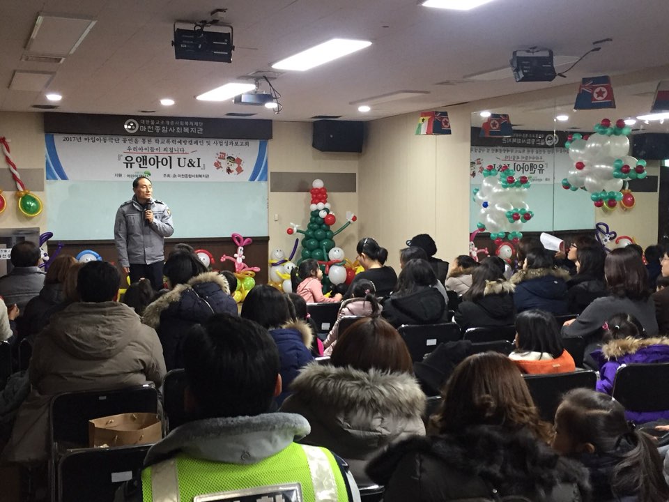 Áö³ 12¿ù 15ÀÏ(±Ý), ¸¶ÃµÁ¾ÇÕ»çȸº¹Áö°ü¿¡¼´Â ÃʵîÇб³¿¡ ÀçÇÐÁßÀÎ ¾Æµ¿µéÀ» ´ë»óÀ¸·Î ÁøÇàµÇ´Â 2017³â Çб³Æø·Â¿¹¹æ»ç¾÷ ÀÚ±âÇ¥ÇöÈÆ·ÃÇÁ·ÎÁ§Æ® Áß Çб³Æø·Â¿¹¹æÄ·ÆäÀÎ ¹× »ç¾÷¼º°úº¸°íȸ¡®À¯¾Ø¾ÆÀÌ U&I¡¯°¡ ÁøÇà µÇ¾ú½À´Ï´Ù. º» »ç¾÷Àº¡¸Æø·Â ¹× À§ÇèÀ¸·ÎºÎÅÍÀÇ ¾ÈÀü¡¹À» ÁÖÁ¦·Î ÇÑ ÃÊ·Ï¿ì»ê¾î¸°ÀÌÀç´Ü °ø¸ð»ç¾÷ Áö¿øÀ¸·Î ÁøÇàµÇ¸ç ¾Æµ¿µéÀ» ´ë»óÀ¸·Î ÀÚ±âÇ¥Çö(¾ð¾î/°¨Á¤)À» ÈÆ·ÃÇϵµ·Ï ÇÏ¿© Çб³Æø·Â¿¡ ¿¹¹æÇÒ ¼ö ÀÖ´Â ¿ª·®À» ³ôÀ̰íÀÚ ±âȹµÇ¾ú½À´Ï´Ù. ...