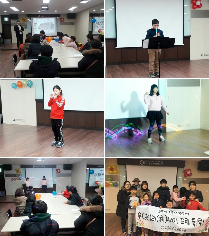 Áö³ 11¿ù 24ÀÏ(¸ñ) ¸¶ÃµÁ¾ÇÕ»çȸº¹Áö°ü(°üÀå À̽ÃÇü)¿¡¼´Â 2016³â ±³À°º¹ÁöÇù·Â»ç¾÷ '¿ì(éÒ)¸®(××) »çÀÌ, µå¸² Åå! Åå! 2 ' ¸¶Áö¸· ȸ±âÀÎ 17ȸ±â Á¾°ÆÄƼ¸¦ ÁøÇàÇÏ¿´½À´Ï´Ù. 2016³â 6¿ùºÎÅÍ ÁøÇàµÈ À̹ø ±³À°º¹ÁöÇù·Â»ç¾÷ '¿ì(éÒ)¸®(××) »çÀÌ, µå¸² Åå! Åå! 2 'Àº ºÎ¸ð-ÀÚ³à°ü°èÁõÁø ¹× Áø·ÎŽ»öÀ̶ó´Â ÁÖÁ¦¸¦ °¡Áö°í ÃÑ 17ȸ±â µ¿¾È ÇÁ·Î±×·¥ÀÌ ÁøÇàµÇ¾ú½À´Ï´Ù. À̳¯ Á¾°ÆÄƼ¿¡¼´Â Áö±Ý±îÁöÀÇ È°µ¿³»¿ëµéÀ» µÇ»õ°Üº¸¸ç, Áö...