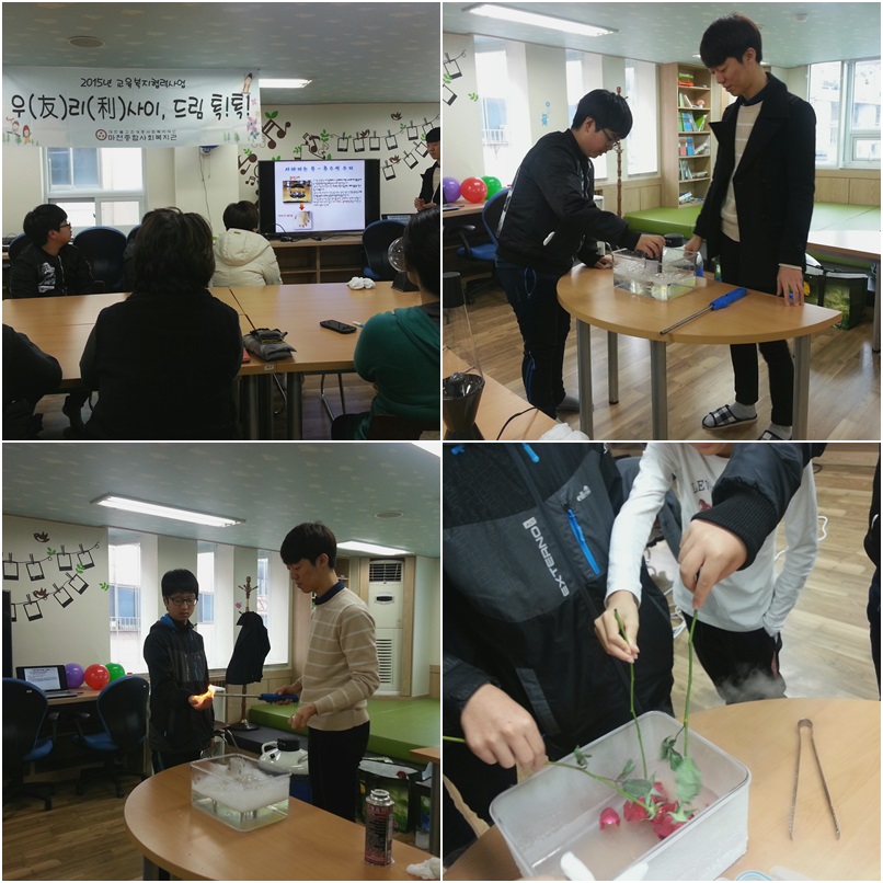11¿ù 28ÀÏ(Åä), ¸¶ÃµÁ¾ÇÕ»çȸº¹Áö°ü(°üÀå À̽ÃÇü)¿¡¼´Â 2015³â ±³À°º¹ÁöÇù·Â»ç¾÷'¿ì(éÒ)¸®(××)»çÀÌ, µå¸² Åå! Åå!' ÇÁ·Î±×·¥ 16ȸ±â°¡ ÁøÇàµÇ¾ú½À´Ï´Ù. 16ȸ±â´Â Á÷¾÷üÇè Ȱµ¿À¸·Î °úÇבּ¸¿øÃ¼ÇèÀ» ÁøÇàÇÏ¿´½À´Ï´Ù. °úÇבּ¸¿øÀ̶ó´Â Á÷¾÷¿¡ ´ëÇØ ¾Ë¾Æº¸°í, ´Ù¾çÇÑ °úÇÐ ½ÇÇèÀ» ÇØº¸´Â ½Ã°£À» °¡Á³½À´Ï´Ù. À̹ø Ȱµ¿À» ÅëÇØ¼ °úÇבּ¸¿øÀ̶ó´Â Á÷¾÷¿¡ ´ëÇØ ¾Ë¾Æº¸°í, Á÷Á¢ ½ÇÇè¿¡ Âü¿©Çغ¼ ¼ö ÀÖ¾ú½À´Ï´Ù. ¾ÕÀ¸...
