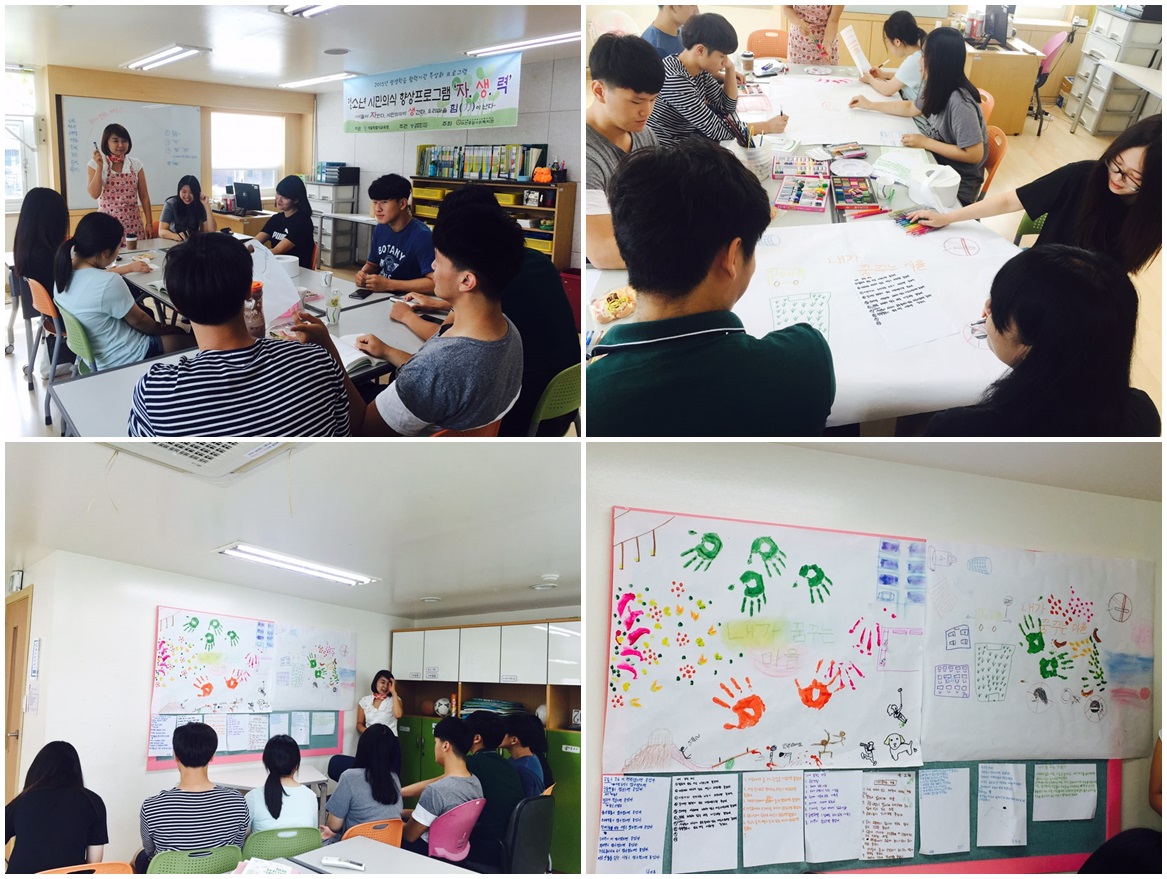 ¸¶ÃµÁ¾ÇÕ»çȸº¹Áö°ü(°üÀå À̽ÃÇü)¿¡¼´Â 8¿ù 22ÀÏ(Åä), 2015³â Æò»ýÇнÀ Çù·Â±â°ü Ư¼ºÈ ÇÁ·Î±×·¥ÀÇ ÀÏȯÀΠû¼Ò³â ½Ã¹ÎÀÇ½Ä Çâ»óÇÁ·Î±×·¥ ¡®ÀÚ.»ý.·Â¡¯ 8ȸ±â°¡ ÁøÇàµÇ¾ú½À´Ï´Ù. 8ȸ±â´Â ±³Àç¡®¸¶À»À» »ó»óÇÏ´Â 20°¡Áö ¹æ¹ý¡¯(¹ÚÀ絿¡¤±èÀÌÁؼöÁöÀ½, ¼¿ï½Ã ¸¶À»°øµ¿Ã¼ ´ã´ç°ü ±âȹ) Áß ¡®Ã©ÅÍ5,6_¿ì¸®´Â ¸¶À»¿¡¼, ¿¹¼úÇÑ´Ù/±³À°ÇÑ´Ù¡¯¸¦ ÀÐ°í »ý°¢ ³ª´®°ú '³»°¡ »ó»óÇÏ´Â ¸¶À»¡®À» ±×·Áº¸´Â Ȱµ¿À» ÁøÇàÇÏ¿´½À´Ï´Ù. ÀÌ...