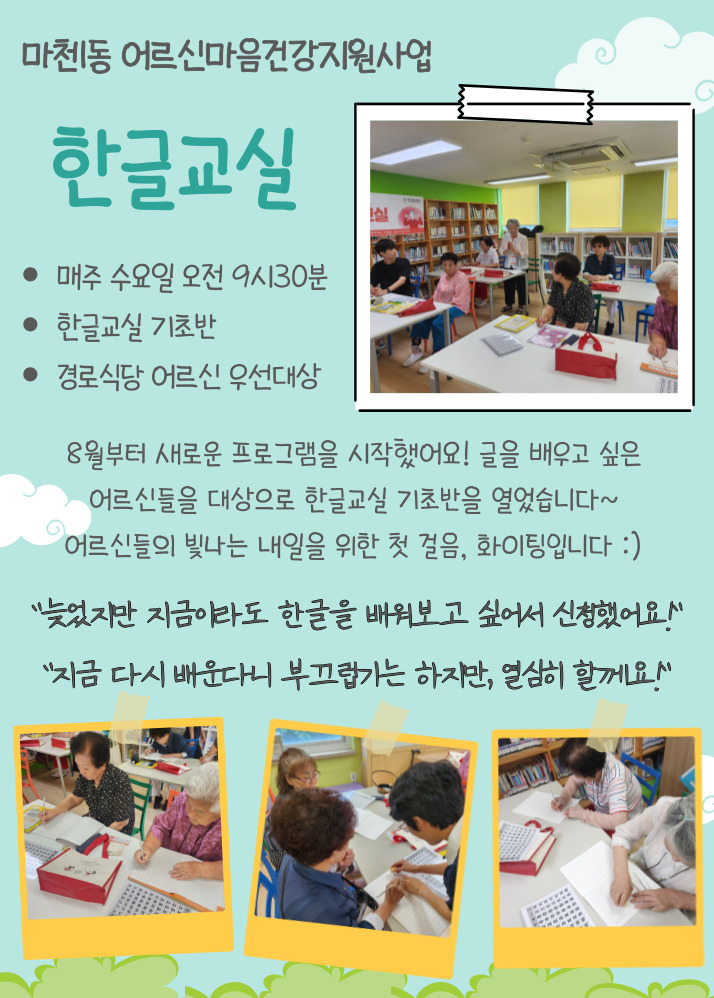 [¾î¸£½Å] 2024³â ¸¶Ãµ1µ¿ ¾î¸£½Å¸¶À½°Ç°Áö¿ø»ç¾÷ "Çѱ۱³½Ç"