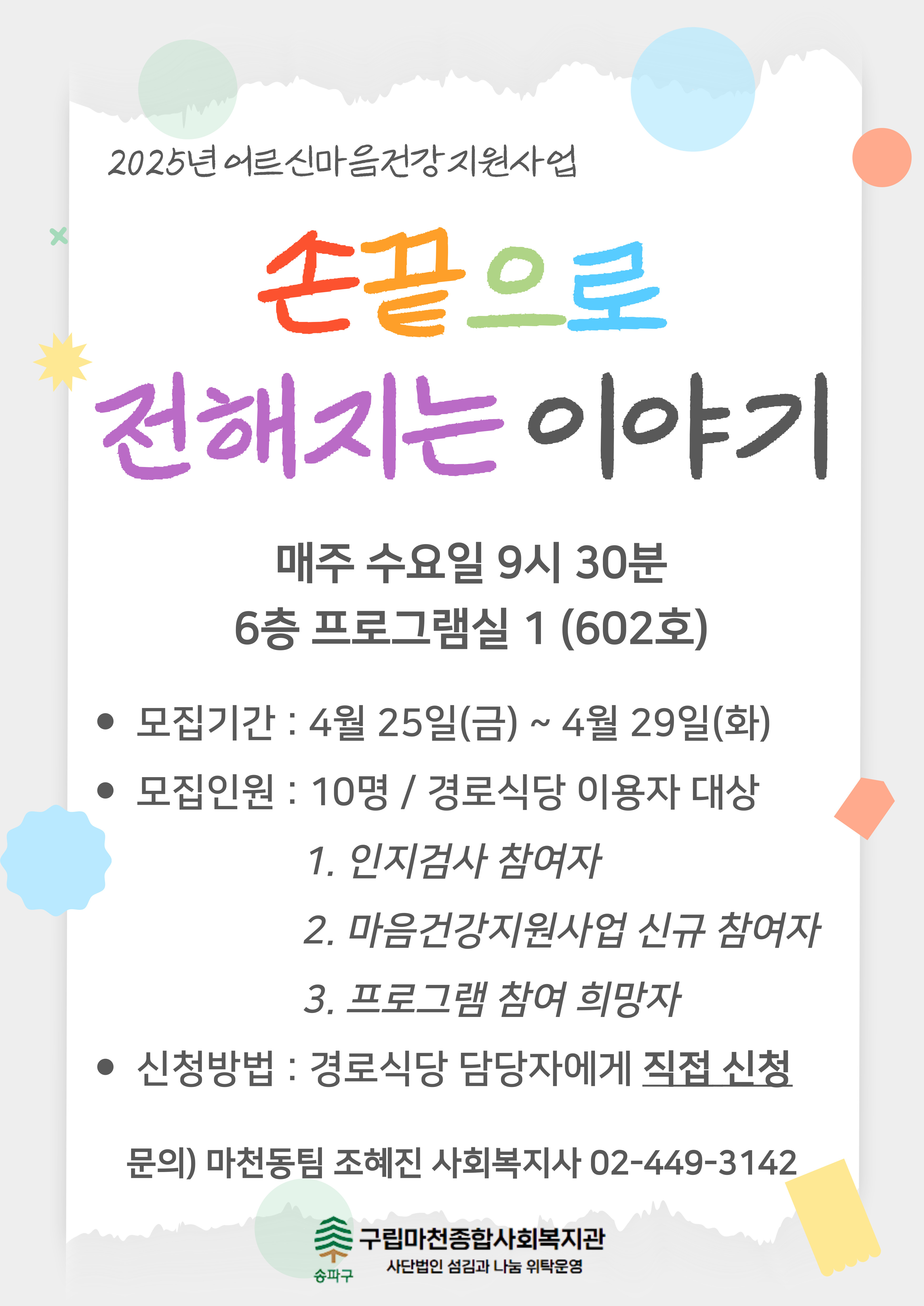 [¾î¸£½Å] 2025³â ¸¶À½°Ç°Áö¿ø»ç¾÷ '¼Õ³¡À¸·Î ÀüÇØÁö´Â À̾߱â...2025.04.28 -