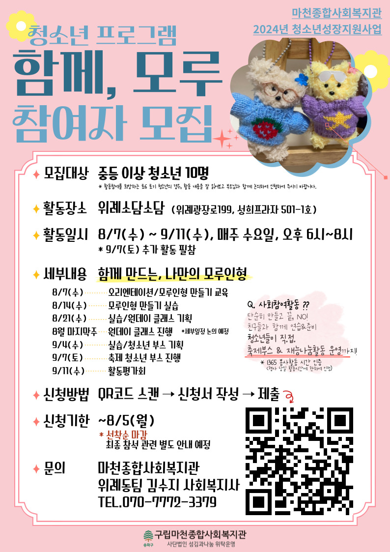 [ÃÊ3-6] 2024 ¸¶Ãµ¾Æµ¿¼ºÀåÁö¿ø»ç¾÷ "¸¶Ãµ½æ¸Ó½ºÄð" Âü¿©ÀÚ ¸ð...2024.07.03 -